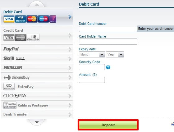 After completing the above procedures, you can log in to your account on William hill casino. Click on the deposit button and a window will appear containing your account details.